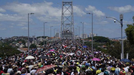 Interditada desde julho de 1991 devido ao risco de colapso da estrutura, a Ponte Hercílio Luz, que liga Florianópolis (SC) ao continente, voltou a ser reaberta...
