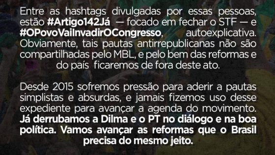 O Movimento Brasil Livre decidiu bater de frente com grupos bolsonaristas que estão articulando um grande protesto contra o Congresso Nacional e o Supremo Tribunal Federal....