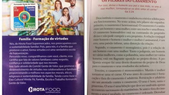 O Hirota Food Supermercados virou alvo de críticas nas redes sociais após distribuir panfletos defendendo o conceito de casamento composto apenas por homem e mulher e...