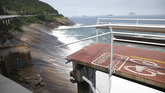 Nielmar de Oliveira A força das águas provocaram o desabamento na manhã de hoje (9) de mais um trecho do calçadão construído na Praia da Macumba,...