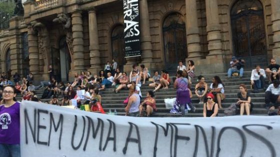 Um protesto na escadaria do Theatro Municipal, no centro de São Paulo, homenageou nesta quarta (19) a adolescente argentina Lucía Pérez, 16 anos, que foi estuprada,...