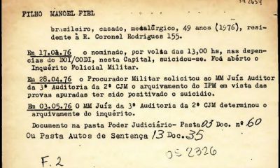 Camila Maciel A ação do Ministério Público Federal (MPF) que pede a responsabilização criminal de sete agentes da repressão envolvidos na morte do metalúrgico Manoel Fiel...