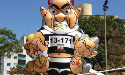 Um boneco de doze metros do ex-presidente Luiz Inácio Lula da Silva vestido de presidiário foi erguido na manhã desta segunda-feira, 12, em protesto contra o...