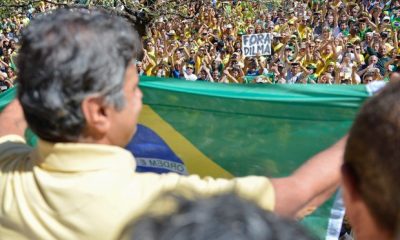 O senador Aécio Neves (PSDB-MG), derrotado por Dilma Rousseff na eleição do ano passado, participou pela primeira vez na rua de um protesto contra o governo da...