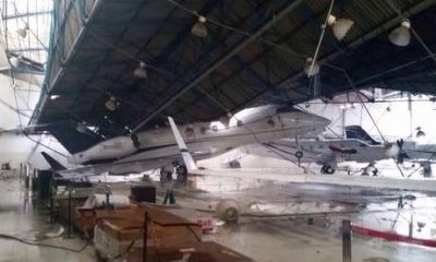 Parte da estrutura metálica do teto do hangar da empresa de táxi aéreo Target, que fica dentro do aeroporto de Congonhas, em São Paul o, caiu na noite desta...