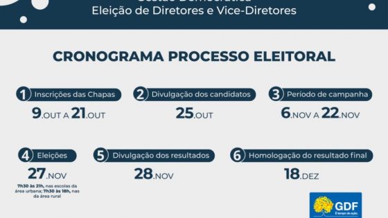 O processo eleitoral para escolha dos novos diretores e vice-diretores das escolas públicas do Distrito Federal começa a deslanchar. De quarta-feira (9) até o dia 21,...