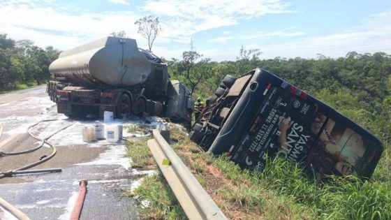 Um acidente envolvendo um caminhão tanque, carregado com óleo diesel, e o ônibus da cantora sertaneja Iasmin Santos, na Rodovia 040, entre Cristalina e Luziânia, neste...