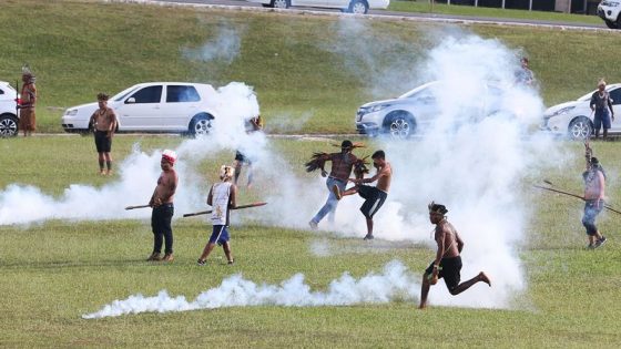 Paulo Victor Chagas Indígenas que estão acampados na Esplanada dos Ministérios protestaram nesta terça (25) em frente ao Congresso Nacional e, ao tentar entrar no prédio,...
