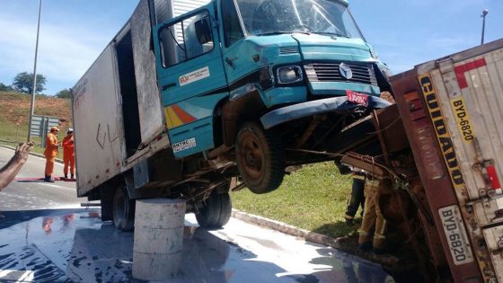 Imperícia? Excesso de velocidade? As causas serão identificadas pela perícia, mas de imediato o que ficou foi o susto provocado por um acidente envolvendo dois caminhões...