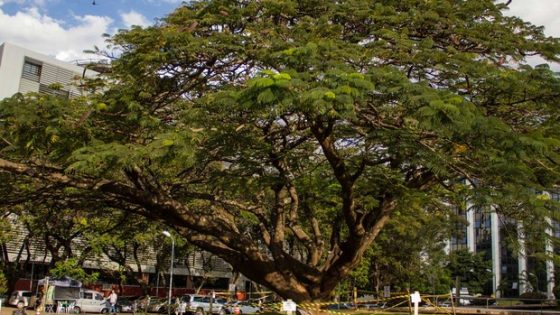 O flamboyant do Tribunal de Justiça, doente aos 40 anos, pode estar com os dias contados. Mas enquanto ele resiste, no mesmo espaço serão plantadas novas...