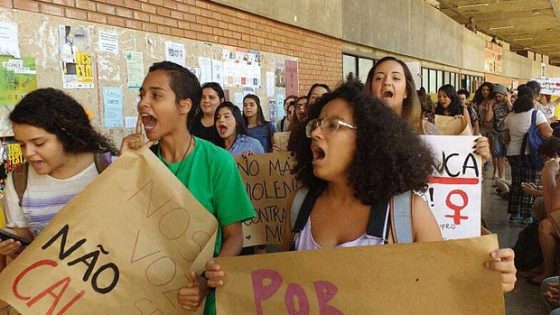 Alunas da Universidade de Brasília protestaram nesta quarta-feira (1º) por mais segurança para mulheres, em alusão ao caso relatado de estupro coletivo contra uma adolescente de...