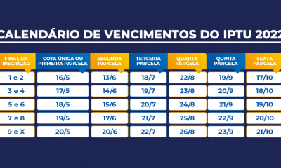 A Secretaria de Economia já definiu o calendário de vencimento do Imposto sobre a Propriedade Predial e Territorial Urbana (IPTU) e da Taxa de Limpeza Pública...