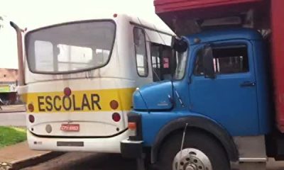 Um caminhão de transporte de colchões, estacionado para a entrega do produto, soltou os freios, desceu a ladeira e bateu em um ônibus escolar. O acidente...