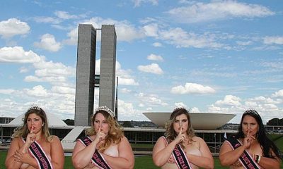 Quatro misses plus size, vestidas apenas de peças íntimas, fizeram uma manifestação contra a “gordofobia” em frente ao Congresso Nacional, em Brasília, nesta terça-feira (11). O...