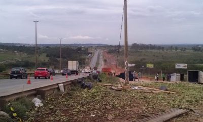 Um caminhão carregado com bananas tombou na DF-003, na descida de Sobradinho, na manhãdeste sábado. O acidente foi provocado por problemas no freio do veículo, disse...