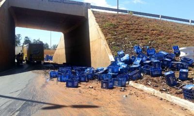 Dezenas de caixas de cerveja tombaram de uma carreta e fecharam o acesso da via marginal da EPTG à DF-087, que dá acesso ao Jóquei Club...