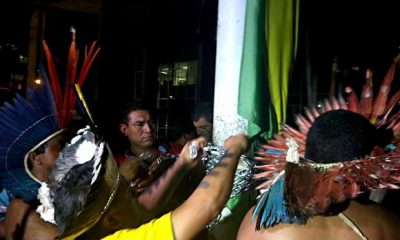 Um grupo de índios permaneceu mais de 11 horas acorrentado em um dos postos da Esplanada dos Ministérios, em protesto contra ações de demarcação de suas...