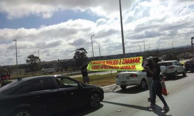 Um grupo de 50 pessoas, que foram aprovadas no último concurso da Polícia Civil do Distrito Federal, fechou a via marginal da EPTG, no sentido Plano...
