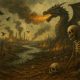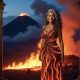 Lavas incandescentes descem a montanha o fluxo em brasas atinge o Rio e corre para o Mar ah como eu amo essa mulher! essa imagem em...