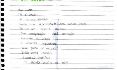 Assim foi o dia: escrevia estórias na parte da manhã. Repartia as palavras pelo texto e o contexto era de alegria. Escrevia, o suor escorria apesar...