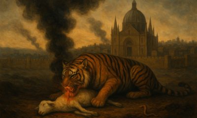Tigre glutão Sicário Que urde A partir do medo Uma escola E arde Contrafeito O seu próprio Mal A presa Bale ainda Sacrifício Oferta a Deus...