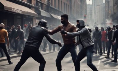 Em campos de batalha ideológica, Onde a razão se perdeu na arena, Irmãos de ideais, agora se enfrentam, Com armas de palavras venenosas e intensas; A...