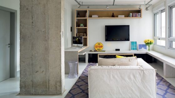 Sem qualquer sinal de quebra-quebra. Neste projeto de apartamento pequeno, em São Paulo, tudo foi resolvido em três meses adaptando apenas a configuração existente com marcenaria...