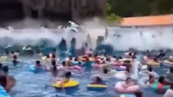 Uma máquina geradora de ondas em um parque aquático no norte da China saiu do controle no último domingo, 28, iniciando um ‘tsunami’ que deixou ao...