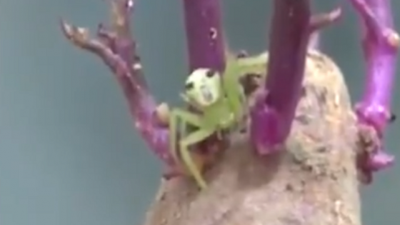 O Diário do Povo da China divulgou imagens de uma pequena aranha verde com um rosto humano na parte de trás, com a “cara” completa com...