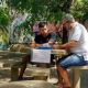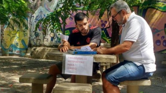 O professor Silvério Morón, de 63 anos está emocionando a muitos com seu gesto de solidariedade. Ele senta diariamente em uma mesa da praça com uma...
