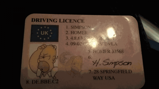 Um motorista parado pela polícia no condado inglês de Buckinghamshire mostrou uma carteira de motorista de mentira em nome do personagem de desenho animado Homer J....