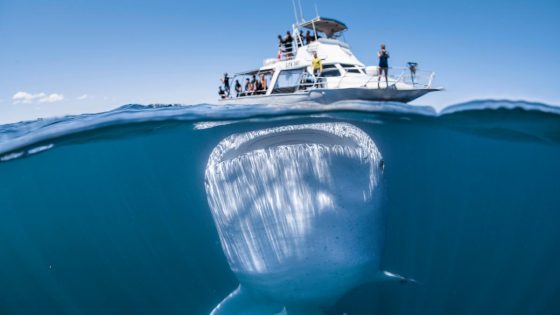 Um fotógrafo capturou um registro de um tubarão baleia logo abaixo de um barco cheio de turistas. A espécie, o maior peixe do planeta, aparece bem...