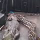 Uma serpente de aproximadamente 4,3 m de comprimento encontrada na parte de trás da casa de uma mulher na Tailândia foi filmada, por uma equipe de...
