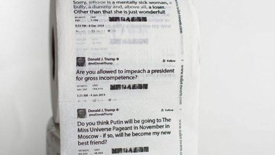 Pedro Nascimento, Edição A companhia Toilet Tweets teve uma ideia um tanto quanto original: começou a vender papel higiênico com tuítes do presidente dos Estados Unidos...