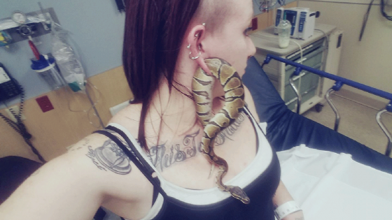 A americana Ashley Glawe, do Oregon, relatou que teve que ir ao pronto-socorro depois que Bart, sua combra de estimação, ficou presa no buraco de seu...
