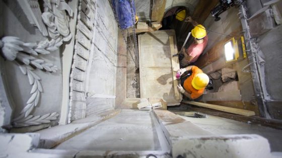 Na câmara mais escondida onde se acredita ser a tumba de Jesus, uma equipe de restauração retirou uma camada de mármore pela primeira vez em séculos,...