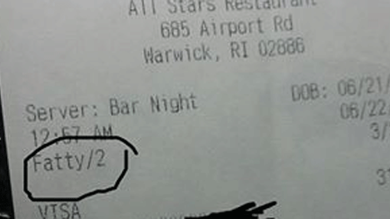 O dono de um restaurante nos EUA demitiu o proprio filho após ele ter identificado um cliente como “Gordinho” (Fatty) em um recibo impresso. O caso...