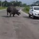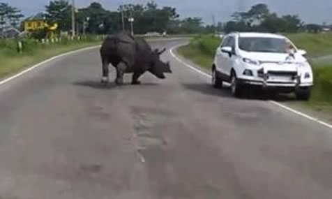 Um rinoceronte descontrolado foi flagrado correndo em uma estrada e assustando motoristas na Índia. O caso ocorreu em Kaziranga, neste domingo (26), e foi filmado. No vídeo,...