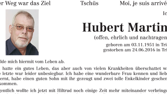Um alemão escreveu e mandou publicar num jornal o próprio obituário, onde critica parentes e afirma que alguns deles “não são bem vindos” a suas cerimônias...