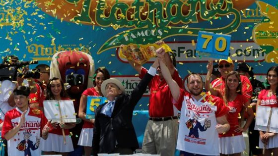 O americano Joey Chestnut, de 32 anos, obteve nesta segunda-feira (4) uma nova vitória na tradicional competição organizada pela rede de fast-food Nathan’s ao devorar 70...