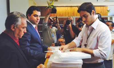 O advogado do PSDB Flavio Pereira registrou neste sábado (5) na sede do Tribunal Superior Eleitoral (TSE), em Brasília, a candidatura do senador mineiro Aécio Neves...