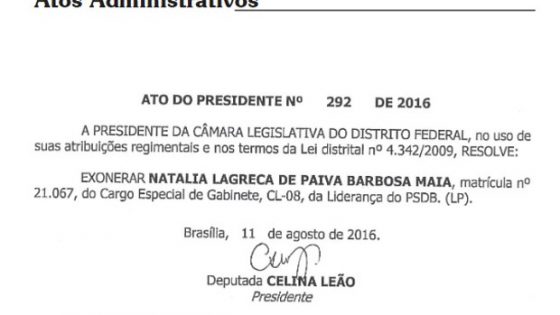 Celina Leão seguiu ao pé da letra o que determina a lei, e demitiu Natália Lagreca de Paiva Barbosa Maia, lotada na liderança do PSDB na...