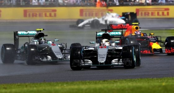 Nem mesmo a chuva que caiu minutos antes da largada do GP da Inglaterra foi o suficiente para atrapalhar Lewis Hamilton no GP da Inglaterra. Depois...