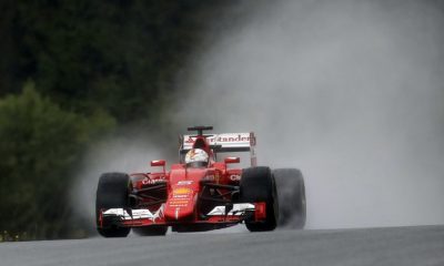 O alemão Sebastian Vettel, da Ferrari, liderou o segundo dia de treinos da Pirelli com os pneus de chuva para a temporada 2016 da Fórmula 1,...
