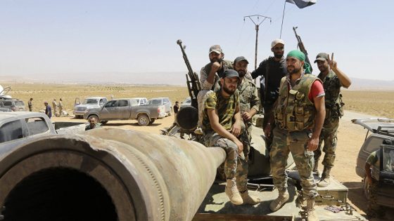 A agência estatal de notícias da Síria (SANA) divulgou imagens mostrando militantes entregando um grande depósito de armas, incluindo mísseis supostamente fabricados nos Estados Unidos, ao...