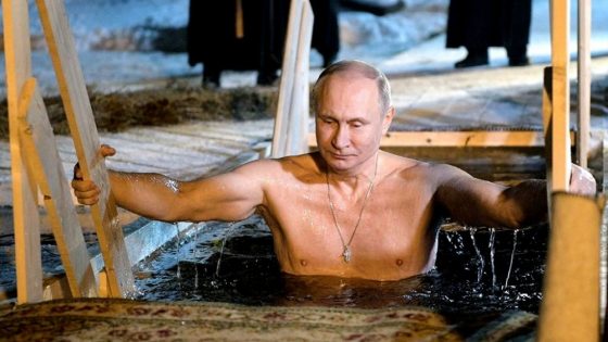 O presidente da Rússia, Vladimir Putin, colocou seu calção de banho e mergulhou nas águas geladas de um lago na noite de quinta-feira para celebrar um...