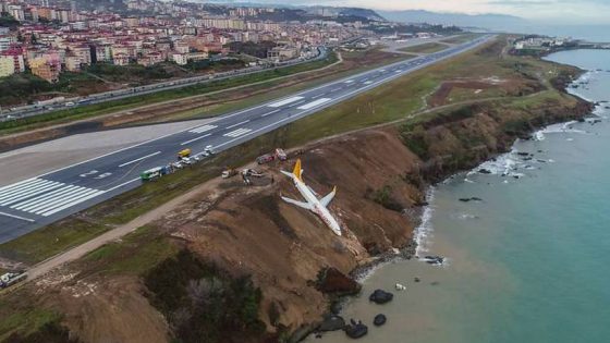 Um avião comercial da Pegasus Airlines derrapou em uma pista ao pousar no aeroporto de Trebzon, no norte da Turquia, e avançou até uma ribanceira, parando...