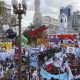 Milhares de pessoas se concentraram nesta sexta-feira em Buenos Aires no encerramento de uma marcha nacional que começou na quarta-feira de várias partes da Argentina para...