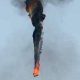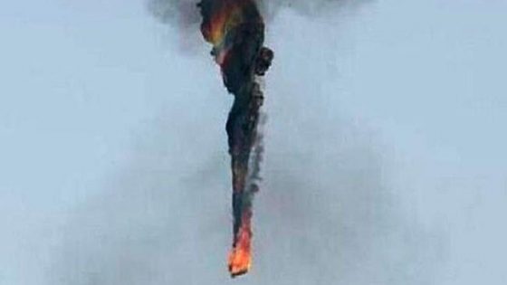 Parte do balão que pegou fogo e caiu perto de Lockhart, no Texas (EUA), e matou 16 pessoas, atingiu uma linha de energia elétrica antes de cair,...