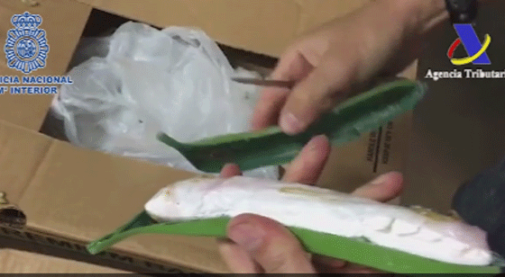 A Polícia Nacional da Espanha descobriu 171 kg de cocaínas escondidas em caixas de bananas de plástico no Porto de Algeciral. A polícia compartilhou um vídeo...